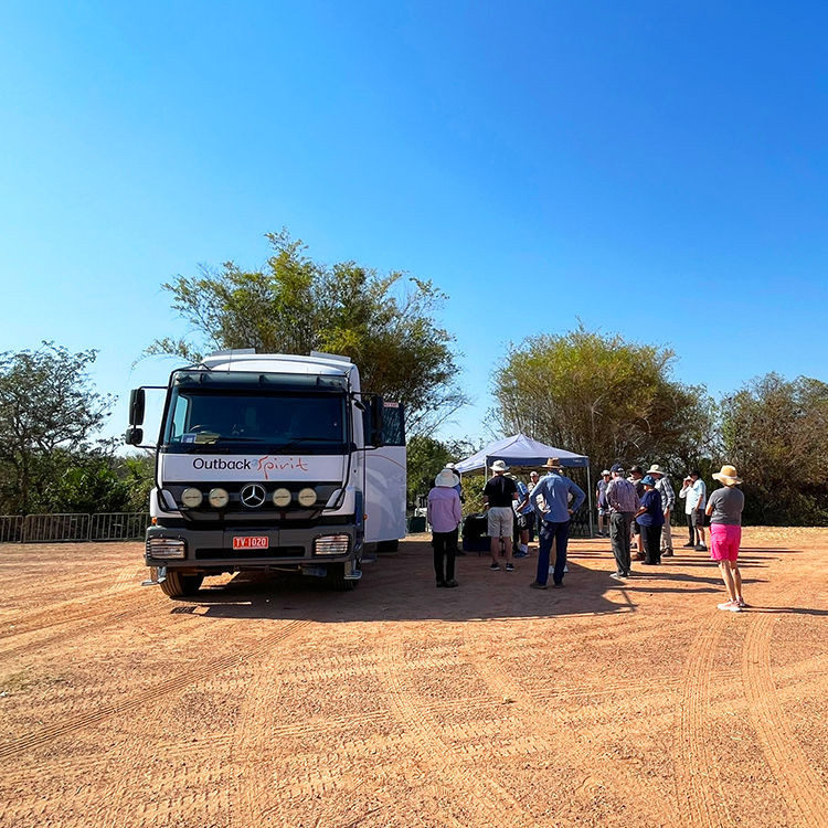 The verges alongside the Stuart Highway out of Darwin are still smouldering as we set off on our four-day Outback Spirit tour, wisps of blue smoke rising off blackened trees. It’s a pastel morning and the temperature is as rosy as the sunrise sky.