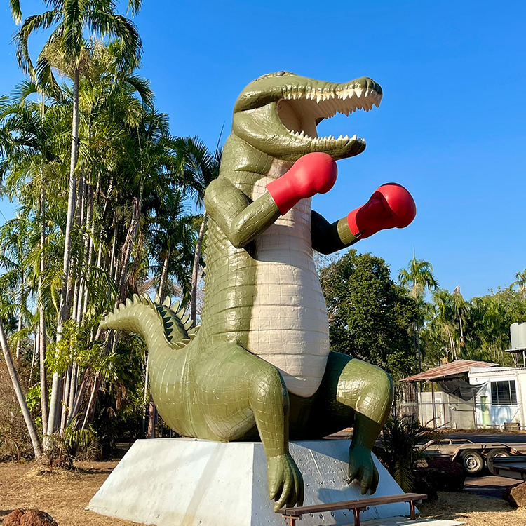 Outside Darwin, we pass the preposterously named township of Humpty Doo, with its must-see roadside attraction: the big Boxing Croc. The six-metre-tall fibreglass crocodile has been pulling punters in for photo-ops since the 1980s.