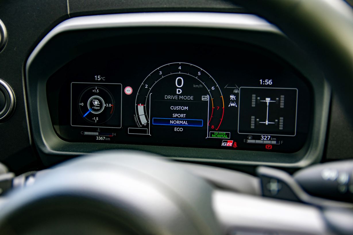 The GR Yaris even comes with a generous safety kit, including a handy Pre-Collision System with AEB, pedestrian/cyclist/motorcycle detection, radar cruise control with curve speed reduction, and lane tracing to name a few. The car will also prevent you from revving over 4,000 rpm until the engine warms up – it includes a warning on the dash that goes away after it’s warmed up.