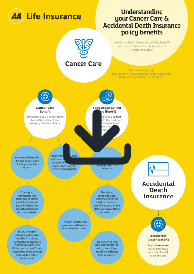 You'll be covered wherever you are in the world, and there's a $5,000 early payout if you're diagnosed with early-stage cancer.