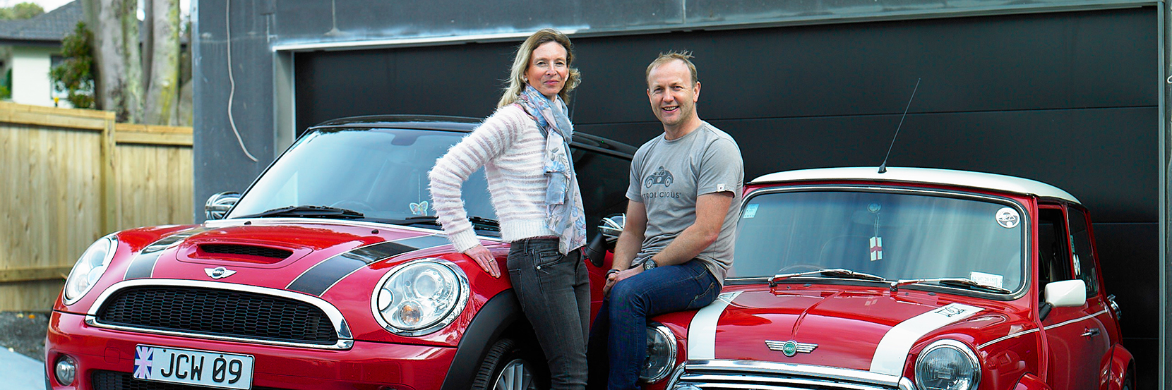 Inside the Auckland resident’s garage, a 1975 Rover Mini Cooper Sport sits beside its younger, shinier version – the 2008 BMW Mini John Cooper Works.