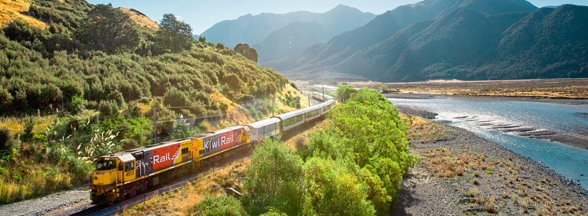 The TranzAlpine’s winding journey from Christchurch across the Canterbury Plains and up through the Southern Alps to Greymouth on the West Coast regularly features in the top train journeys of the world.
