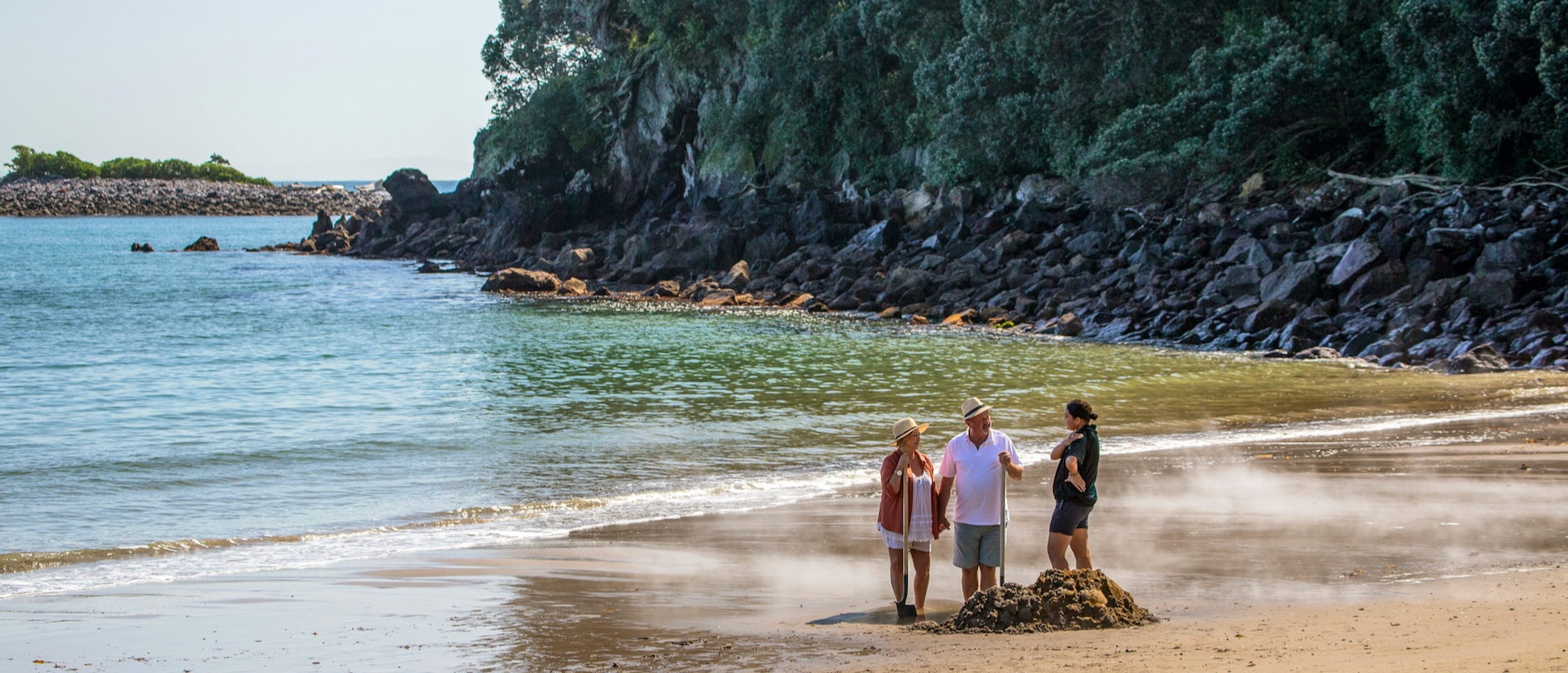 One of New Zealand’s lesser-known hot water beaches can be found on the southern shores of Lake Tarawera. Te Rātā Bay is accessible by boat, water taxi or kayak. Alternatively, if you’re up for an adventure, follow the 15km, four- to five-hour walk one way on a good but sometimes steep track that's part of the Tarawera Trail. (A popular option is to walk one way and arrange a water taxi for the trip back.) At Te Rātā Bay you can swim or soak in a natural thermal rock pools at the lake edge, or explore inland to find another small pool approximately 50 metres into the bush. Take care though – in some places the sand can get as hot as 86ºC, which is hot enough to cook food.