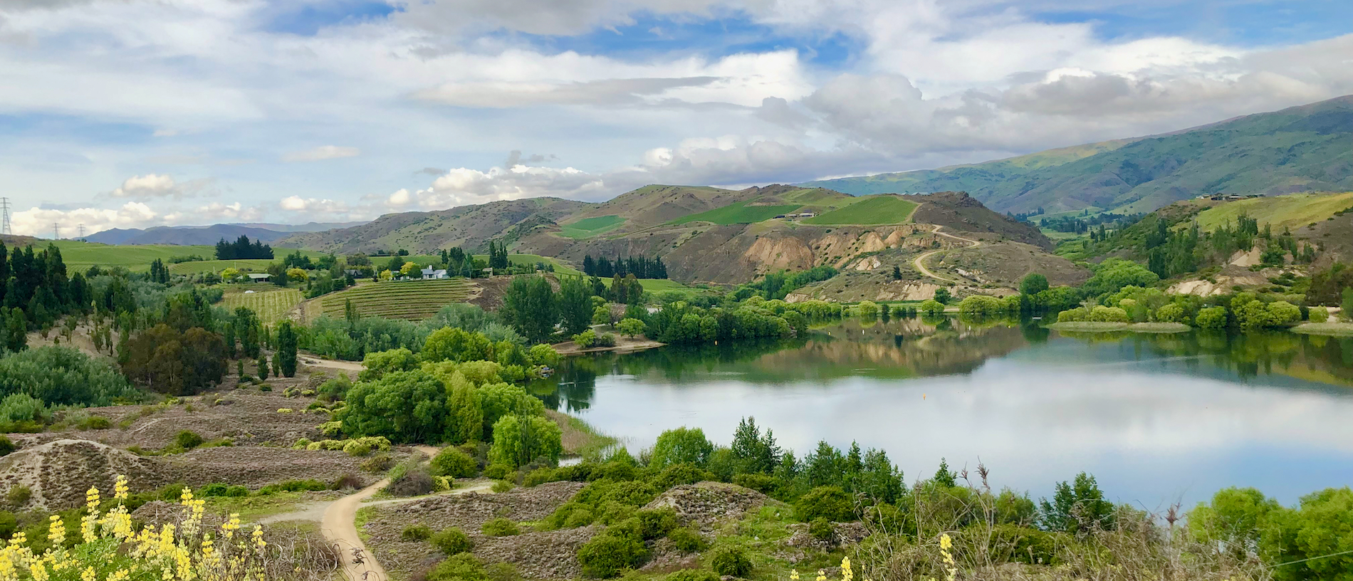 At its far end, the shore of Lake Dunstan is dotted with homes taking advantage of small human-made bays with willows and grassy banks, the cycle path winding around them, between the lawns and the lake. It was heartening to encounter local cyclists and walkers on the trail and to see families at the lake edge with kayaks and picnics. There was a healthy, content vibe of people enjoying life.