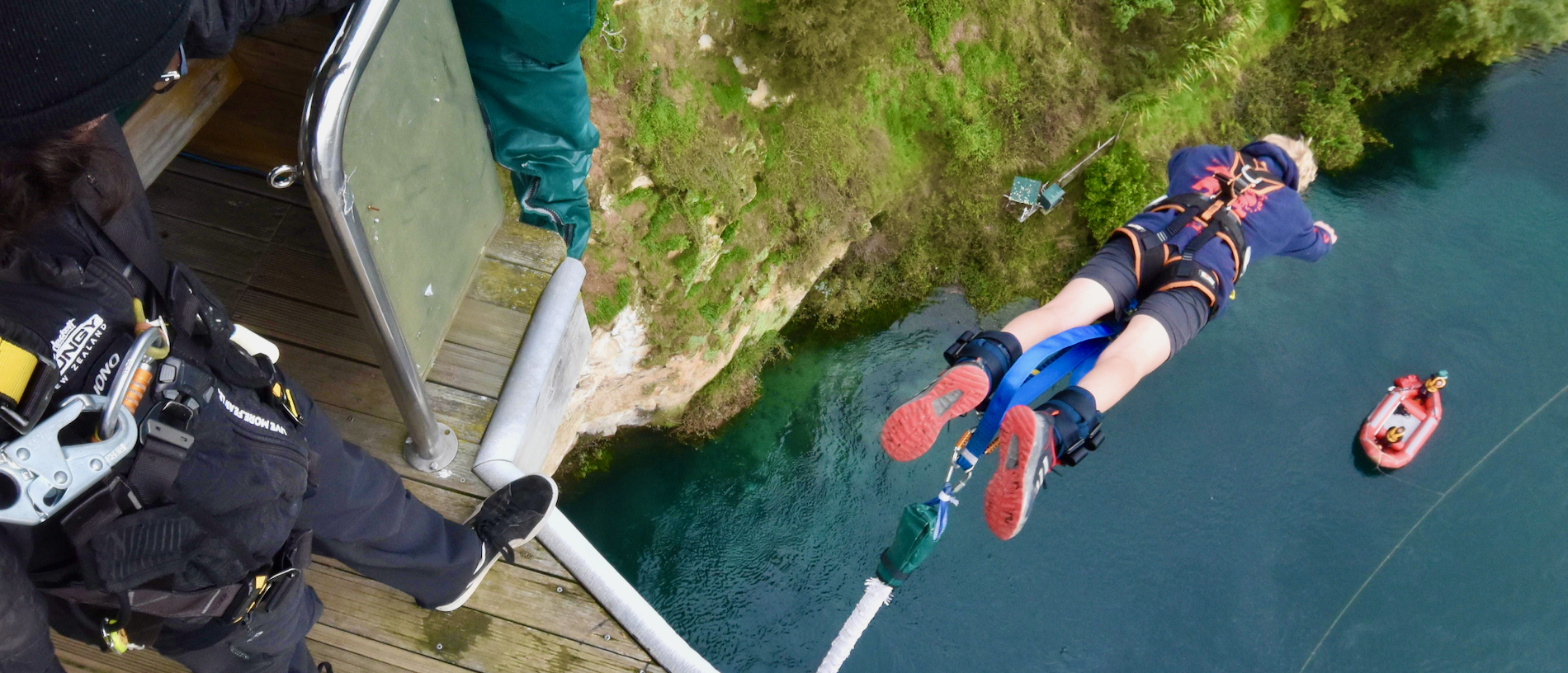 Taupō is home to New Zealand’s only cliff-top bungy jump site. Even if you’re not brave enough to take the plunge yourself, the location offers spectacular views over the mighty Waikato River. Here, just after it leaves the lake, the river is deep, turquoise and filled with swirling whirlpools. Enticing to look at, and if you’re feeling extra-gutsy, to dip into at the full extent of your 47-metre bungy drop. Step off the cantilevered platform, or pick your jump style from the handy reference menu of techniques including a swan dive, backwards, or elevator drop. As the crew say, it’s best to leap before your brain catches up. Alongside the classic bungy jump, the Taupō site also offers the North Island’s only giant swing. Tandem or solo, you’re hitched into a seated harness and released across the valley at scream-inducing speeds of up to 70km/h.