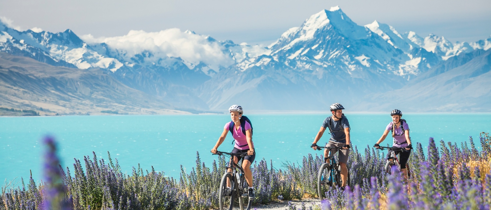 An alternative start to the A2O cycleway is in Lake Tekapō township, under Mt John Observatory, where white domes of six telescopes protrude from the tussock like giant puffballs. The two gravel-road trails merge part way along the lake and, near its southern end, a purpose-built cycling trail begins.