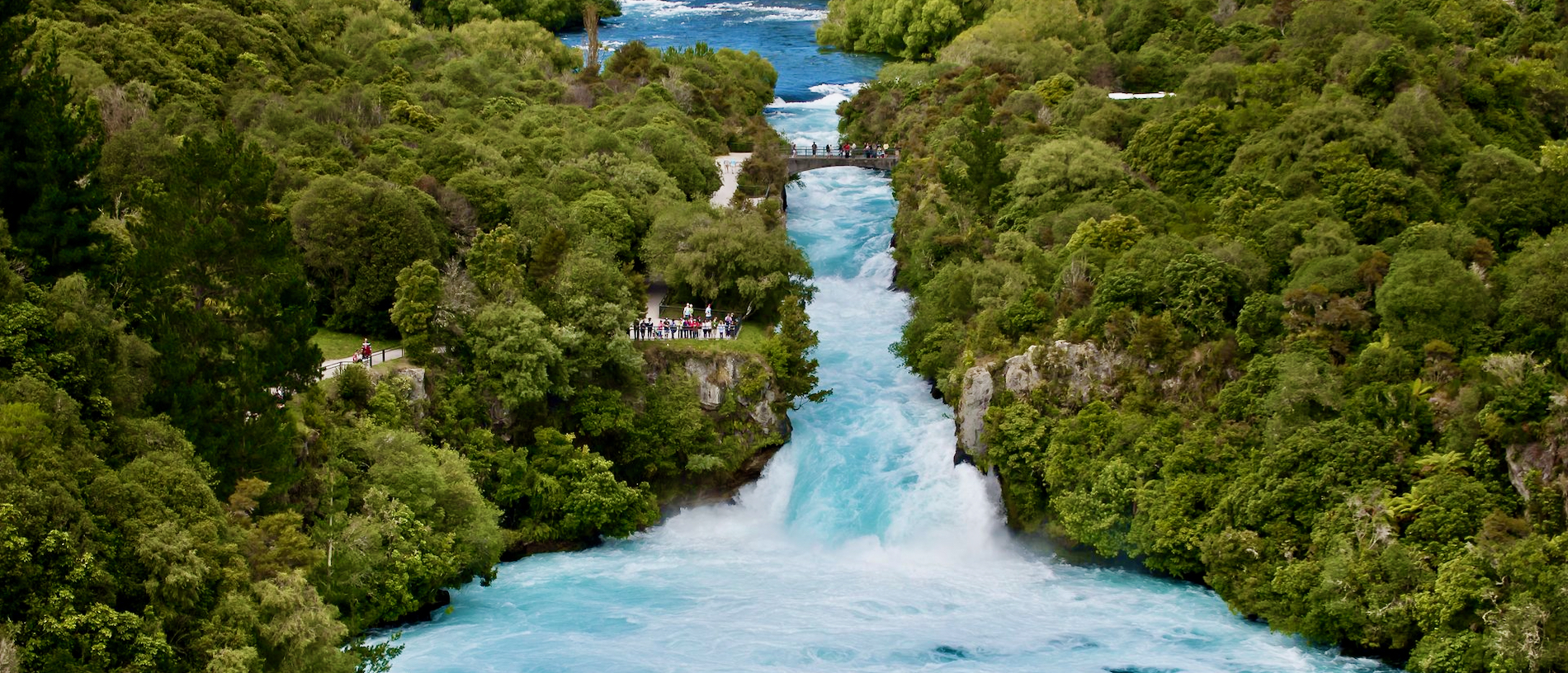 Huka Falls are New Zealand’s most visited – and photographed – natural attraction. Here, you can witness water flowing at 220,000 litres per second from 11m high. It’s a sight to behold. The mighty Waikato River narrows from 100m down to a slender 15m wide, creating a surge powerful enough to fill an Olympic swimming pool in 11 seconds. Witness this from bridges, lookout points and various trails and paths, or alternatively, jump on a jet boat to get up close to the frothing base of the falls.