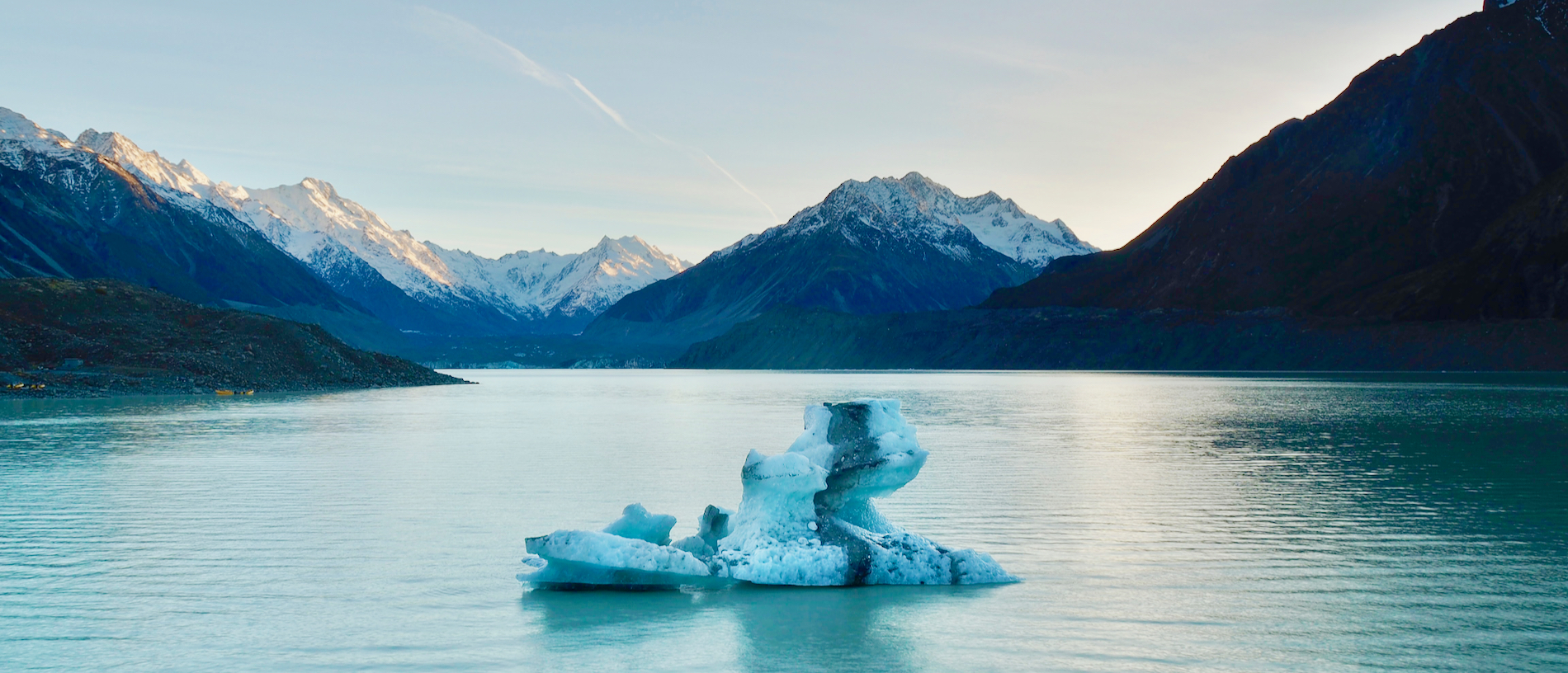 This trip branches off the Tasman Glacier View Track just past the Blue Lakes Shelter and leads to a viewpoint of the glacier terminal lake and the source of the Tasman River. Icebergs can be seen floating in the lake in summer, and in winter the lake freezes over.