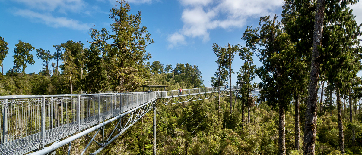 From the 40m-high circular platform on the West Coast Treetop Walk, the views are breathtaking and even the giant podocarps, some up to 600 years old, seem small.